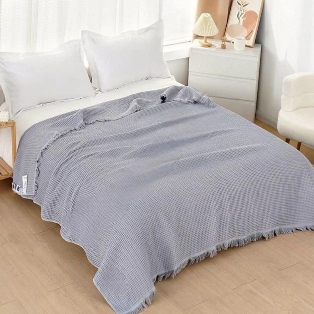 Покривало вафельне Євро KOLOCO 200 х 230 см (41878) Сірий