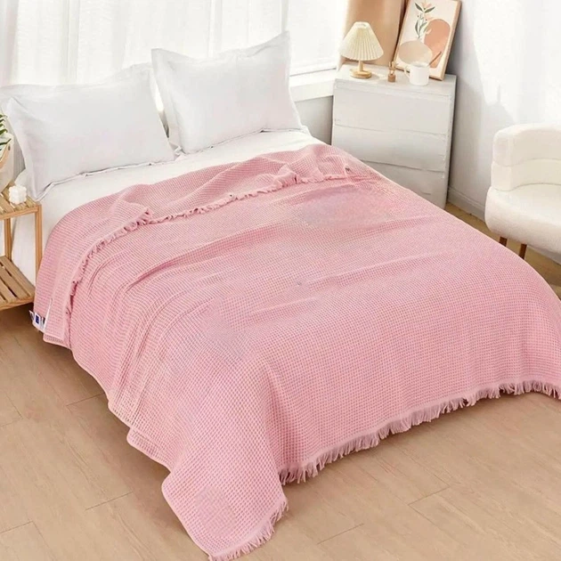 Покривало вафельне Євро KOLOCO 200 х 230 см (41876) Рожевий