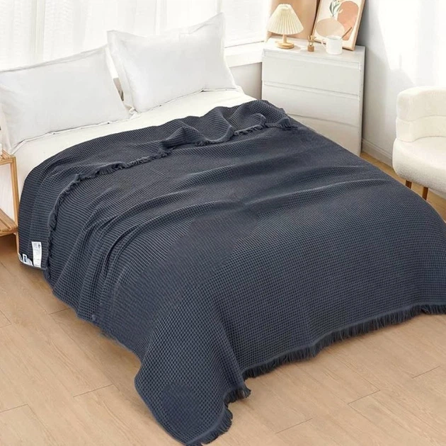 Покривало вафельне Євро KOLOCO 200 х 230 см (41879) Графітовий