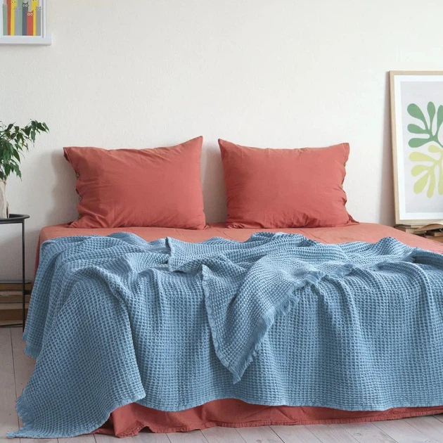 Покривало вафельне Євро KOLOCO 200 х 230 см (41875) Блакитний