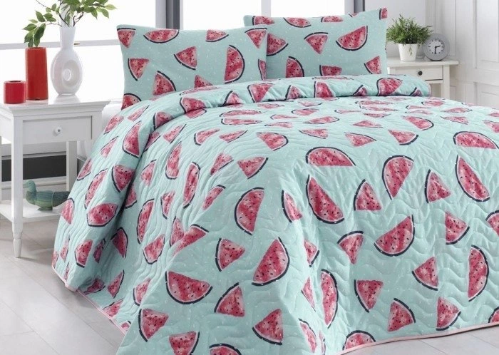 Покривало стьобане з наволочками Eponj Home. Karpuz a.mavi-160х220+50х70 (1 шт)