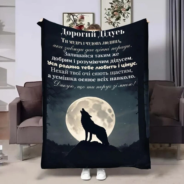 Персоналізований плед Дідусю:Вовча стехія з малюнком 160х200