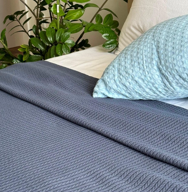 Плед покривало косичка LavSon 100 бавовна Півтораспальний Евро 200х230 Блакитний