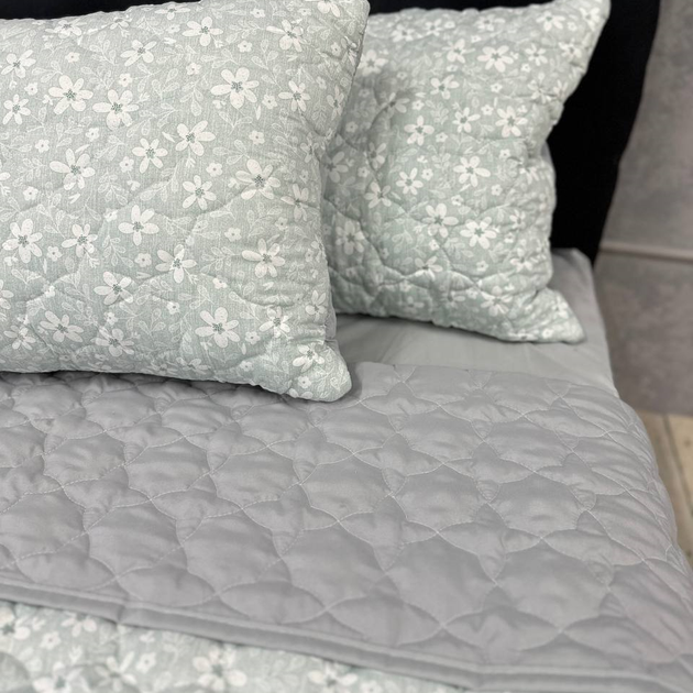 Покривало літнє стьобане Cappone Квіткова Симфонія 220х240 см + 2 подушки 40х60 та 2 наволочки 50х70 см, зелене
