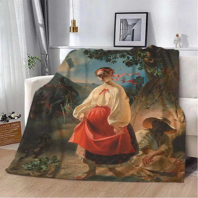 Плед покривало Патриотичний Вогонь 135х160 Блакитний Плюш-велюр