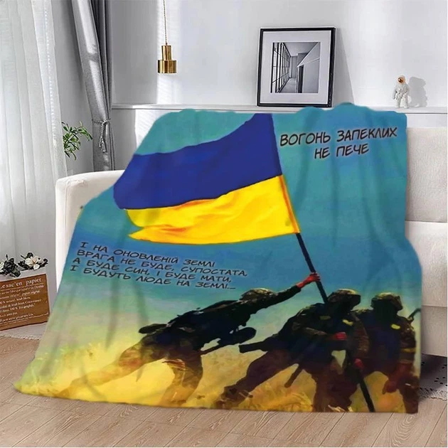 Плед покривало Патриотичний Вогонь 135х160 Блакитний Плюш-велюр