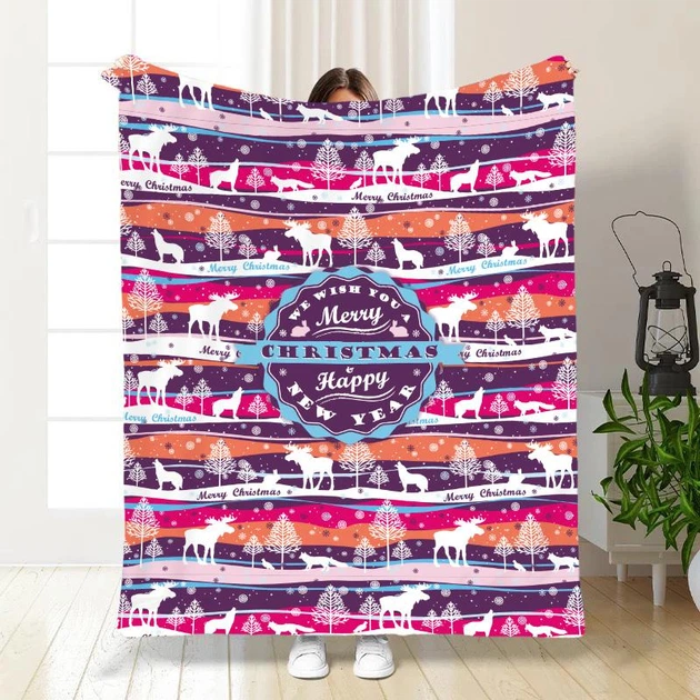 Плед покривало Новорічні олені 135х160 Різнобарвне Плюш-велюр 3086B