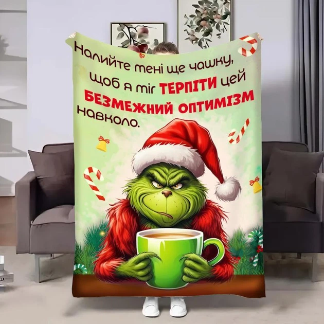 Плед покривало Новорічний Грінч:Чашка чаю 135х160 Різнобарвне Плюш-велюр