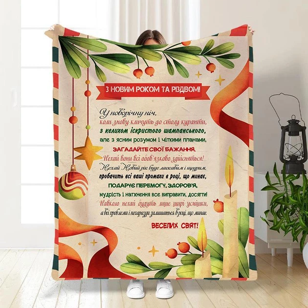 Плед покривало Новорічний святкові вітання 135х160 Різнобарвне Плюш-велюр
