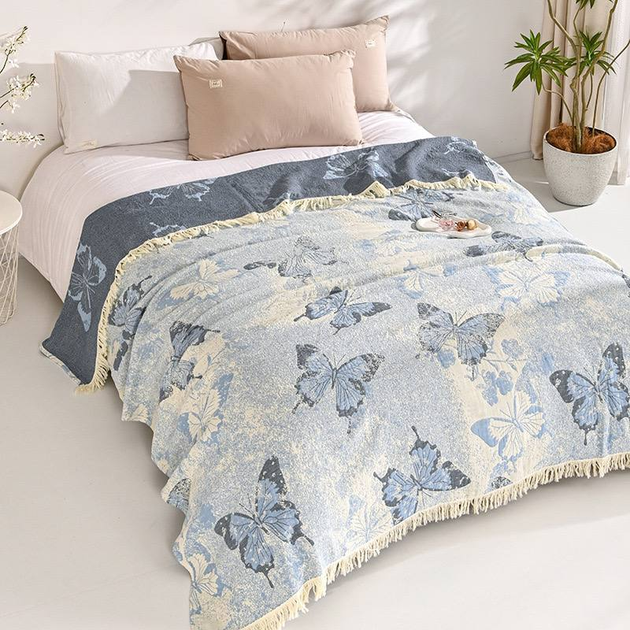 Муслиновий плед покривало Cappone Метелики бавовна 4 шари 200230 см, блакитний