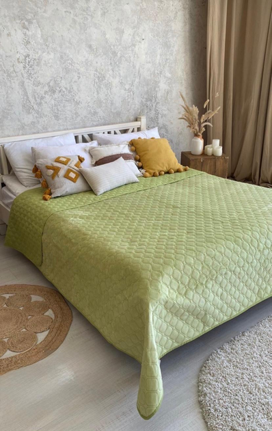 Покривало ТЕП велюрове Velour Ромб круглий Салатовий Євро 220х240 см Двостороннє
