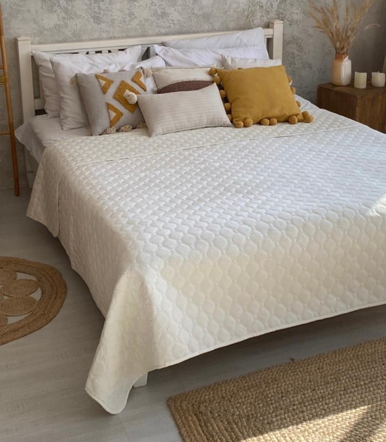 Покривало ТЕП велюрове Velour Ромб круглий Молочний Євро максі 240х260 см Двостороннє
