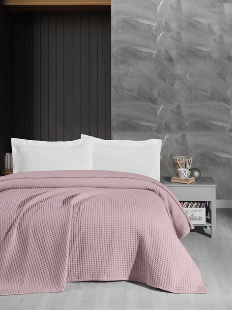 Бавовняний плед-покривало Піке Вафелька світло-рожевий 180х220, 100 бавовна
