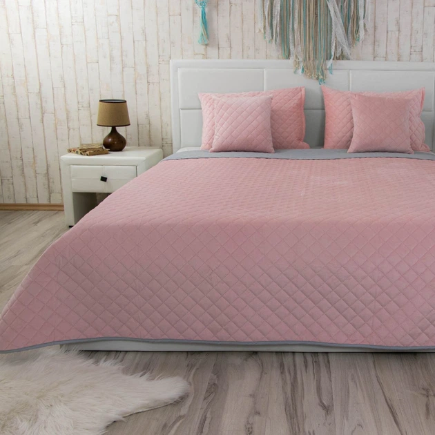 Покривало Руно 220х240 VeLour Pink and Grey ромб 330.55Pink and Grey ромб