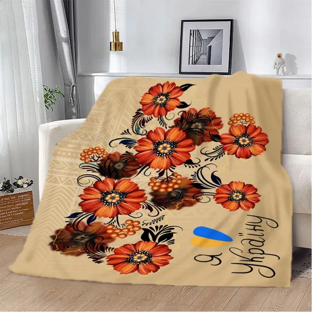 Плед покривало Полуторний Патріотичні Чудо 160х200 Бежевий Плюш-велюр