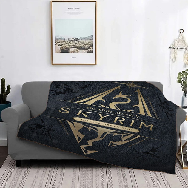 Плед покривало Полуторний Skyrim 160х200 Чорний Плюш-велюр