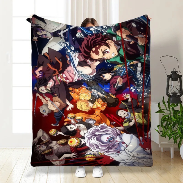 Плед покривало Полуторний Атака титанів Аніме 160х200 Червоний Плюш-велюр