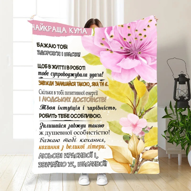 Плед покривало Полуторний з Побажаннями для Куми 160х200 Білий Плюш-велюр