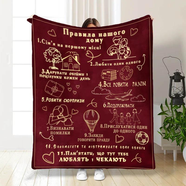 Плед покривало Полуторний Мотиваційні 160х200 Чорний Плюш-велюр