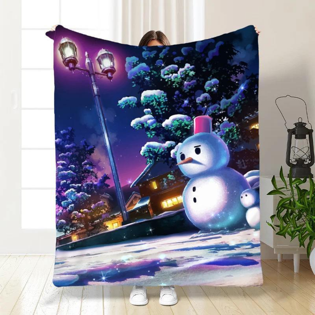 Плед покривало Полуторное Новорічний Сніжна атмосфера 160х200 Різнобарвне Плюш-велюр