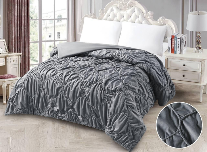 Покривало-ковдра стьобане з оксамитової тканини Євро 200х220 см графітове РОМБ (VM03)
