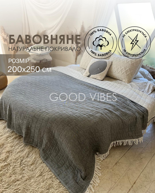 Покривало ZEINTEX Wheat бавовняне світло-сіре 230х260 см