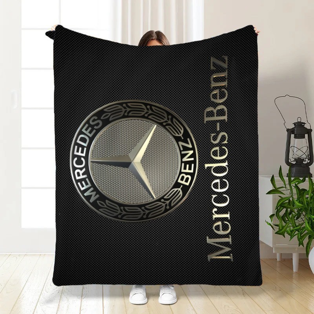 Плед покривало Полуторний Машини Mercedes-Benz Lux 160х200 Чорний Плюш-велюр