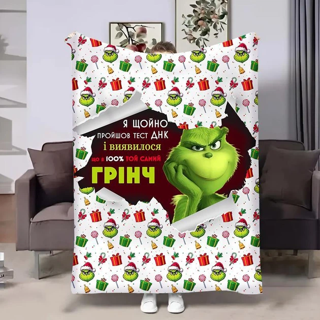 Плед покривало Полуторное Новорічний Грінч:100 160х200 Різнобарвне Плюш-велюр