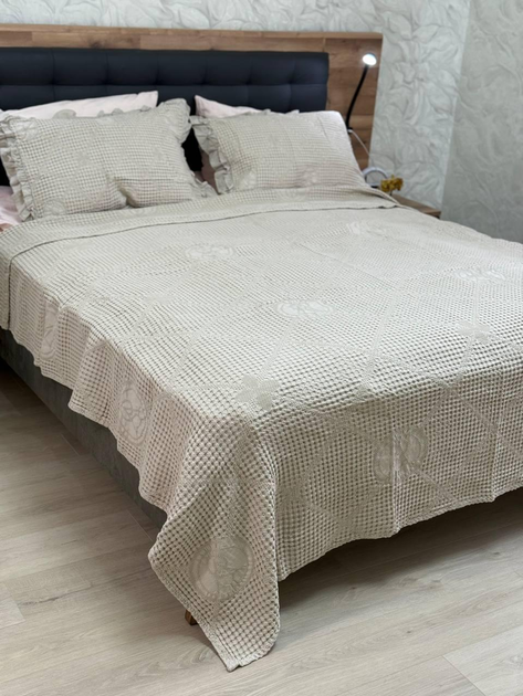 Літнє вафельне покривало Євро 200230 см 2 наволочки 5070 см із рюшами Сірий (П4К-al-n-vaf-001)