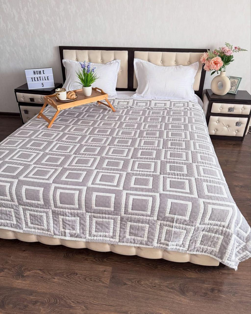 Покривало літнє муслинове Євро 200х230 Світло-сірий (П4К-muslin25-004-01)