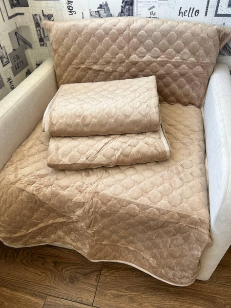Комплект покривал велюрових Koloco на диван та 2 крісла Бежевий (Д-1102-2)
