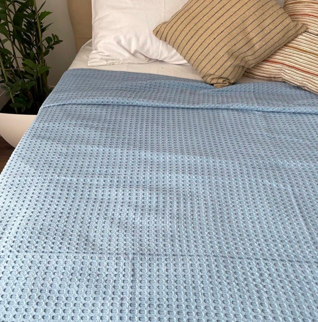 Вафельне плед покривало LavSon 100 органічна бавовна Євро 240х220 + 2 наволочки 50х70 Блакитний