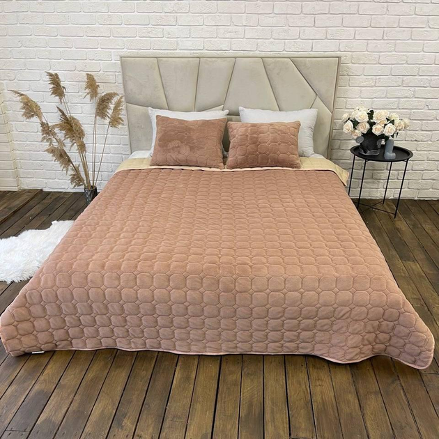 Стегане двостороннє покривало Євро 210х230 з подушками 40х60 2шт Капучино (П4К-cap-podush-003)
