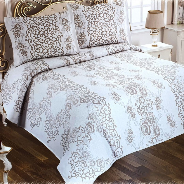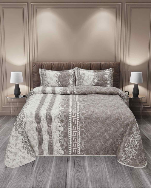 Жаккардове покривало з наволочками My Bed "Zerafet", бежево-сірий, 240x260 см, Євро-максі