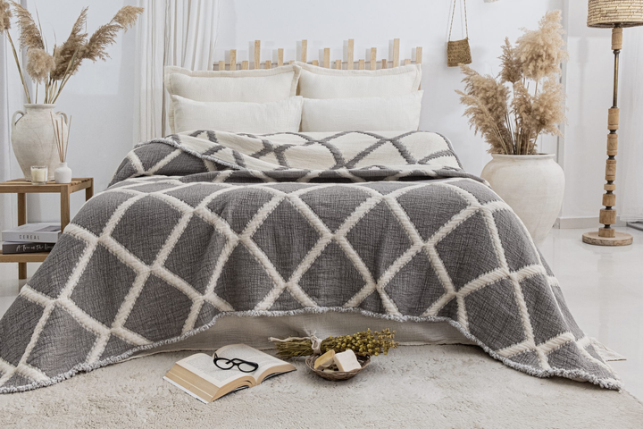 Муслінове покривало Saheser Savio Grey 160х240 см