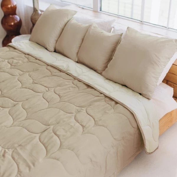 Гарне покривало нейтрального кольору надає вишуканості інтер'єру Вашої спальні або вітальні. Стібка для покривал з універсальним геометричним візерунком підкреслює фактуру тканини і надає покривала об'ємну форму. Стьобане покривало не тільки захищ