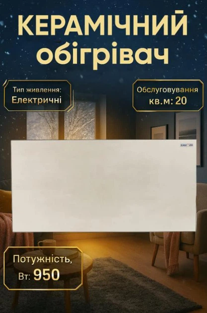 Керамічний обігрівач 950BG електропанель 950 Вт 20 кв.м бежевий + сушка для рушників і взуття