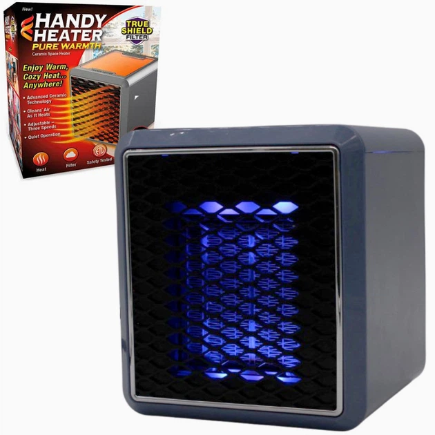 Портативний керамічний обігрівач 1500W настільний механічний сірий для обігріву приміщень