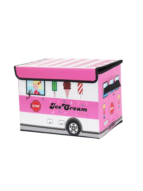 Органайзер для зберігання речей у вигляді фургона з морозивом з картону та флізеліну 38х25х25 см рожевий (CTB-023)