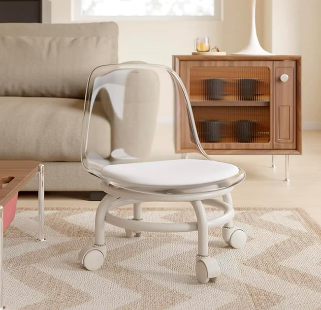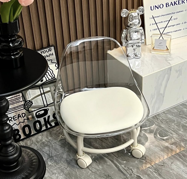 Стілець для будинку з коліщатками, акрилова спинка, м'яке сидіння.