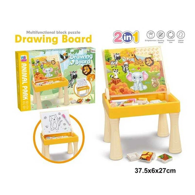 Столик дитячий дошка двостороння для малювання маркером та збирання пазла Жовтий (009-2119)