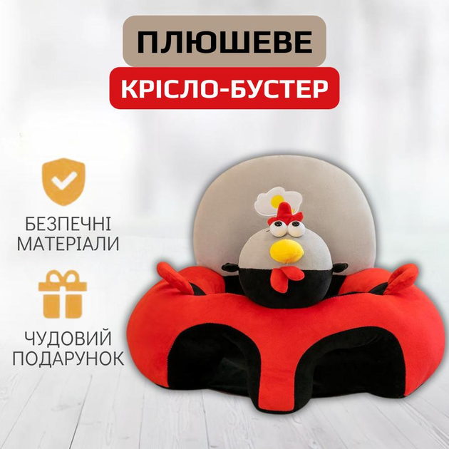 Дитяче плюшеве сидіння-бустер у вигляді тваринки м'яке крісло з бортиками ципа чорно-червоний (280046М)