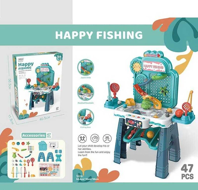 Ігровий столик 8139 “Весела рибальство”, висота 66 см, 32 аксесуари, підсвічування, озвучування англійською, мелодії, в коро