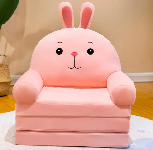 М'яке дитяче крісло іграшка плюшеве Зайчик 60 см, м'яке крісло-диван для дівчинки, Рожевий