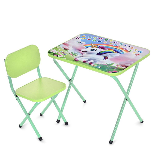 Дитячий складний столик M 5967-5 "Єдиноріг" зі стільчиком, англ. абетка