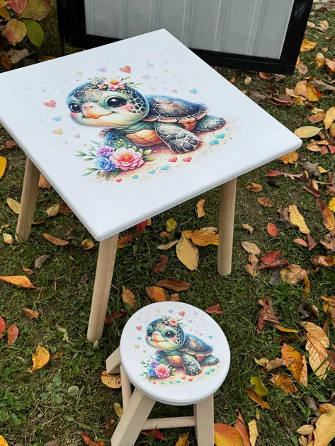 Дитячий дерев'яний столик 51x55 см. та стільчик 25x25x24 см. для ігор, універсальний набір меблів для дитини №4