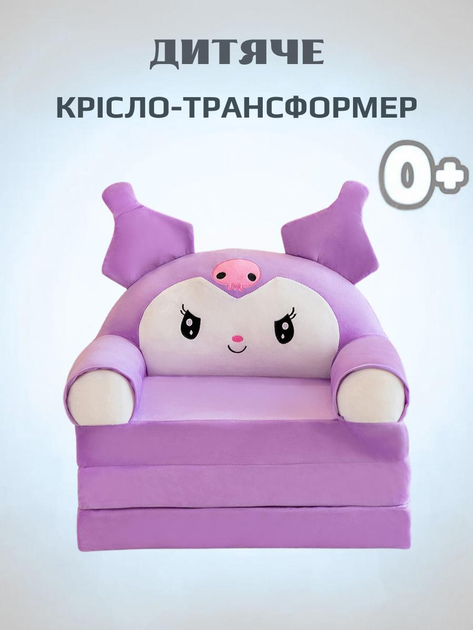 Плюшеве розкладне крісло-ліжко для дітей куромі диванчик трансформер 2 в 1 бузковий (280027М)