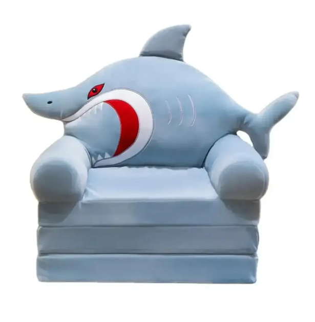 Дитяче м’яке крісло-трансформер дитяче плюшеве крісло складне ліжечко зручне для дитини розкладне безкаркасне 3в1 Акула
