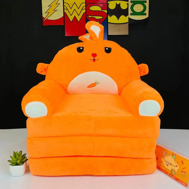 Дитяче м’яке крісло-трансформер дитяче плюшеве крісло складне ліжечко зручне для дитини розкладне безкаркасне 3в1 Зайка з ба