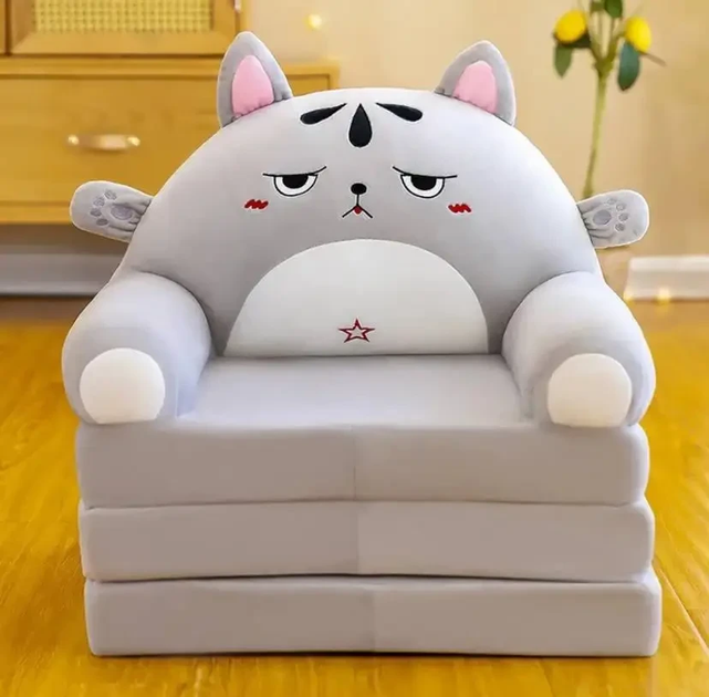 Дитяче м’яке крісло-трансформер дитяче плюшеве крісло складне ліжечко зручне для дитини розкладне безкаркасне 3в1 Кішка